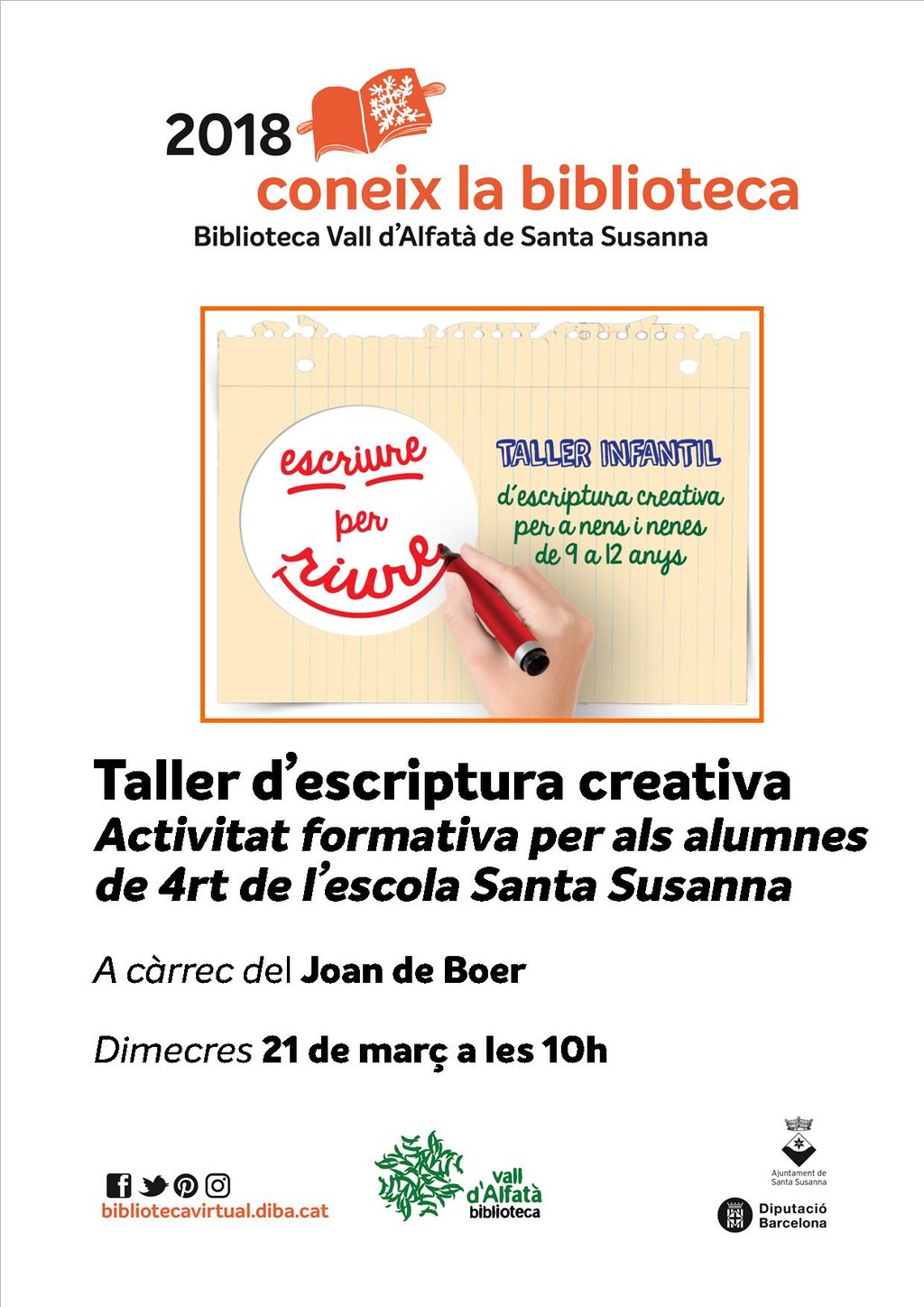 Taller d'escriptura creativa per als alumnes de 4rt de l'escola Montagut a càrrec de Joan Boer.