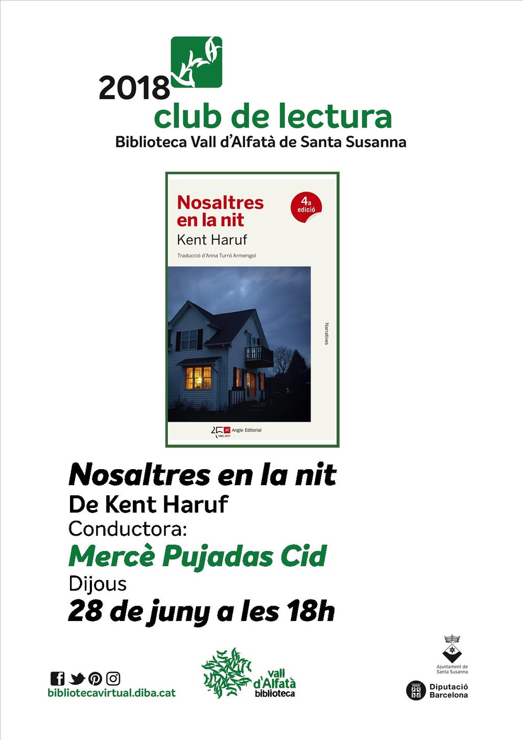 - S'analitzarà la novel·la Nosaltres en la nit de Kent Haruf. És una activitat conduida per mercè Pujadas Cid.