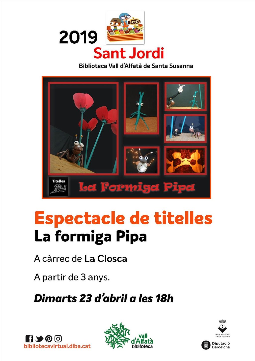 Espectacle de titelles amb La formiga Pipa a càrrec de La Closca. Per a nens i nenes a partir de 3 anys!