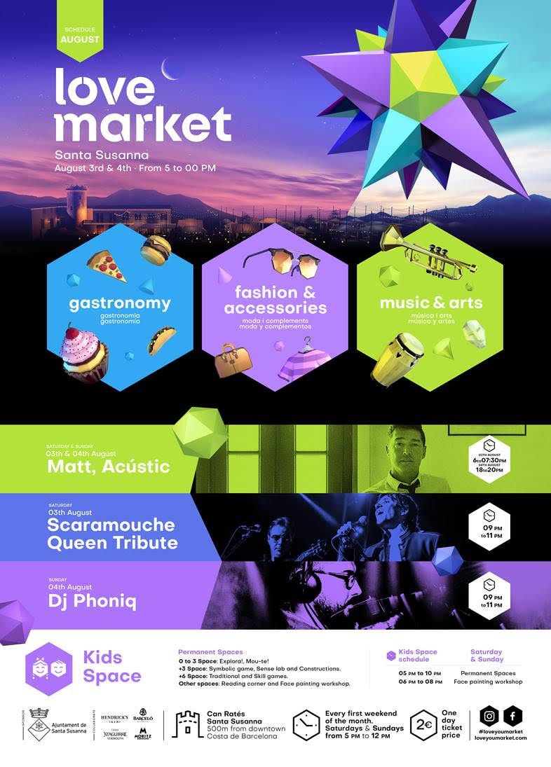 - Els dies 3 i 4 d'agost torna el Love Market, un mercat de moda, complements, gastronomia, música i arts que es repetirà el primer cap de setmana de cada mes a la Masia de Can Ratés.