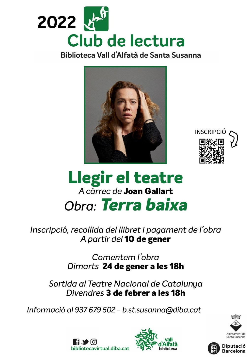 El dimarts 24 de gener, la Bbiblioteca Vall d'Alfatà organitza l'activitat "Llegir el teatre" emmarcada dins el Club de lectura, on es comentarà l'obra "Terra Baixa". L'acte començarà a les 18 h i anirà a càrrec de Joan Gallart.