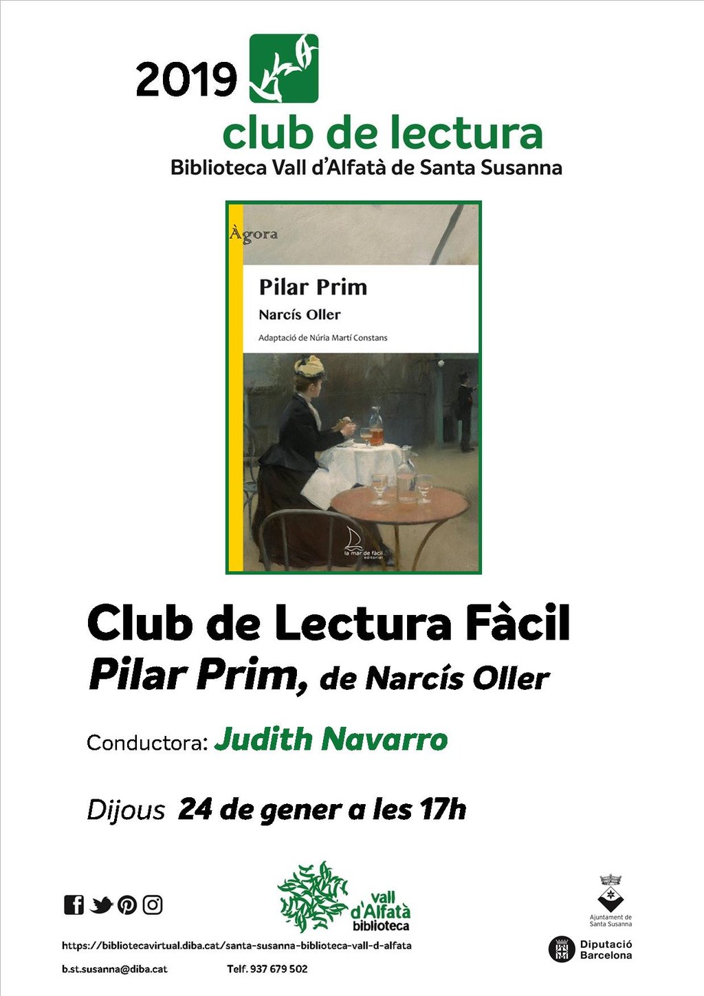 - S'analitzarà l'obra Pilar Prim de Narcís Oller, a càrrec de Judith Navarro.