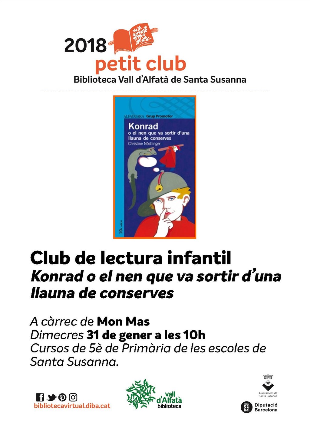 - https://www.stasusanna.cat/ca/actualitat/agenda/club-de-lectura-infantil-konrad-o-el-nen-que-va-sortir-duna-llauna-de-conserves