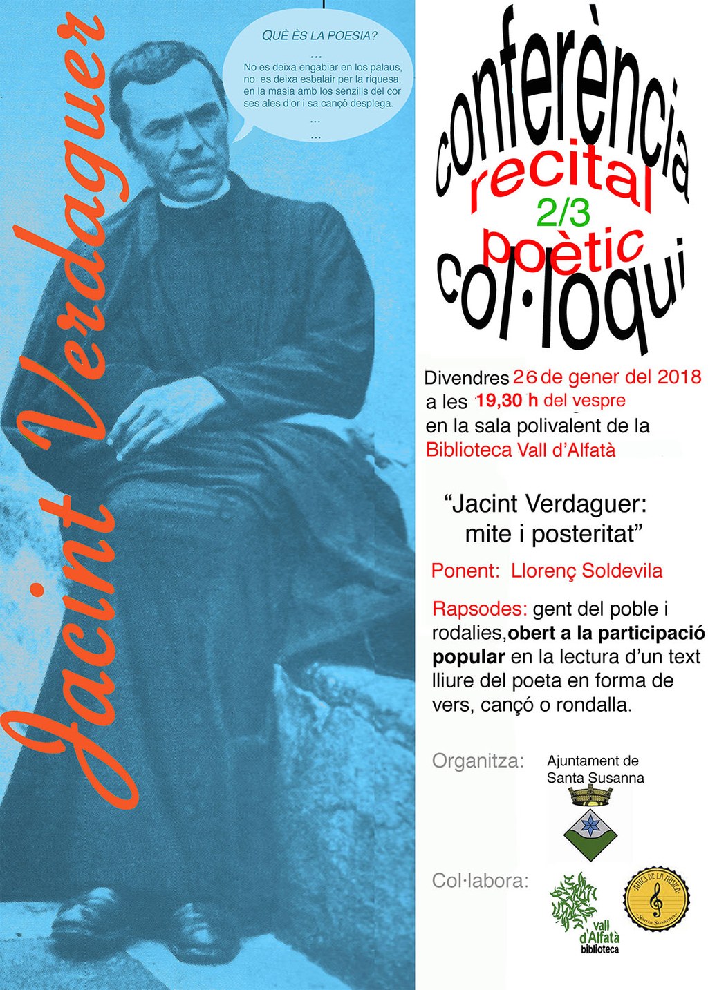 Conferència, recital poètic i col·loqui "Jacint Verdaguer: mite i posteritat".