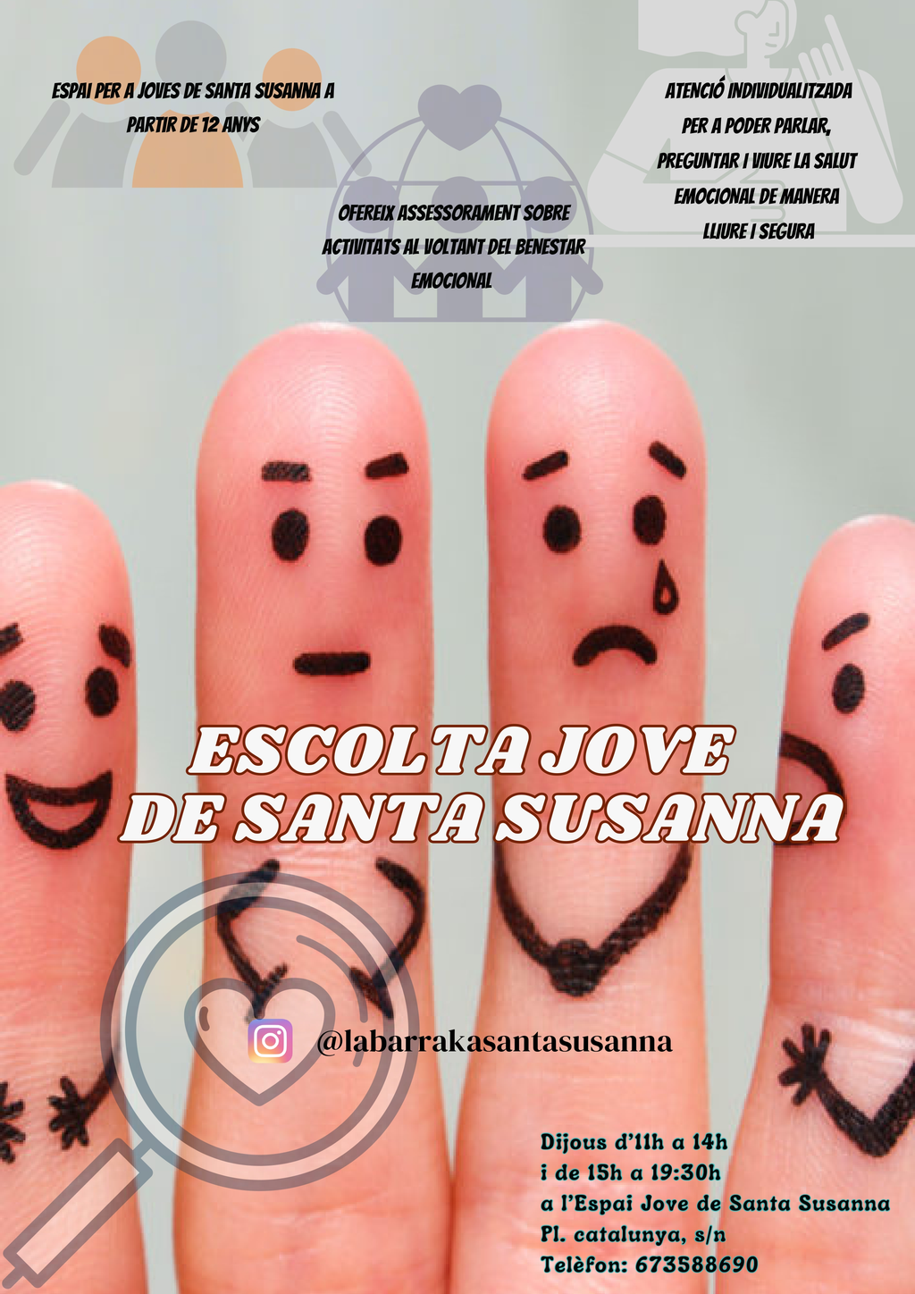 Cada dijous del mes de novembre, la Barraka Santa Susanna ha organitzat l'activitat "Escolta jove de Santa Susanna". Un acte que tindrà dos horaris: d'11 h a 14 h i de 15 h a 19:30 h i que està adreçat a joves a partir de 12 anys.