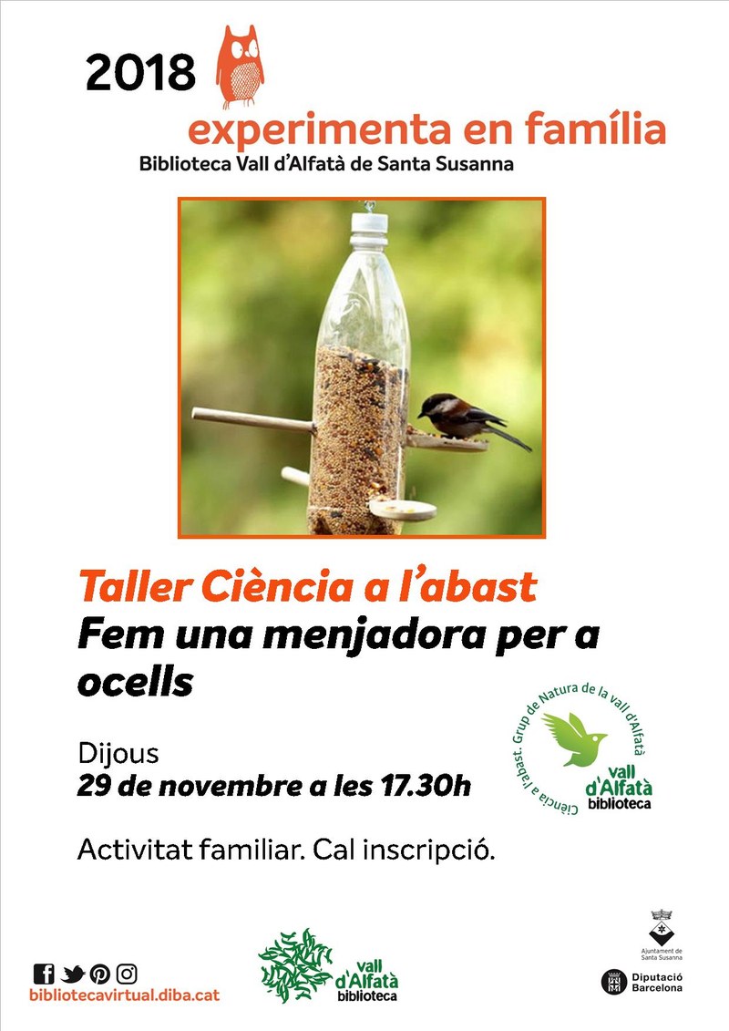 Taller Ciència a l'abast: Fem una menjadora per a ocells.  Activitat familiar. Cal inscripció.