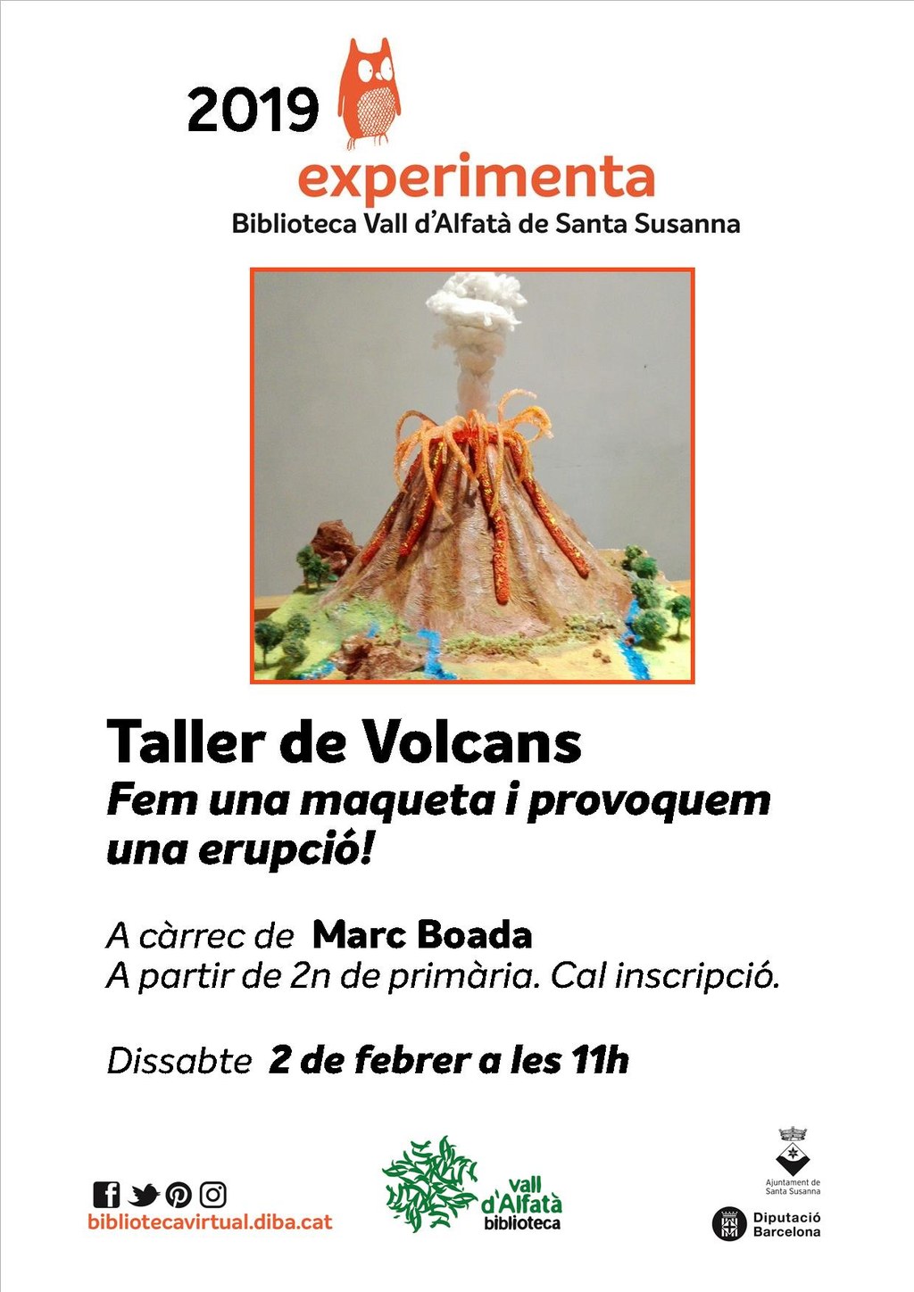 Nova sessió de l'Experimenta a la Biblioteca Vall d'Alfatà de Santa Susanna. En aquesta ocasió es farà una Taller de volcans, amb maqueta i erupció inclosa.