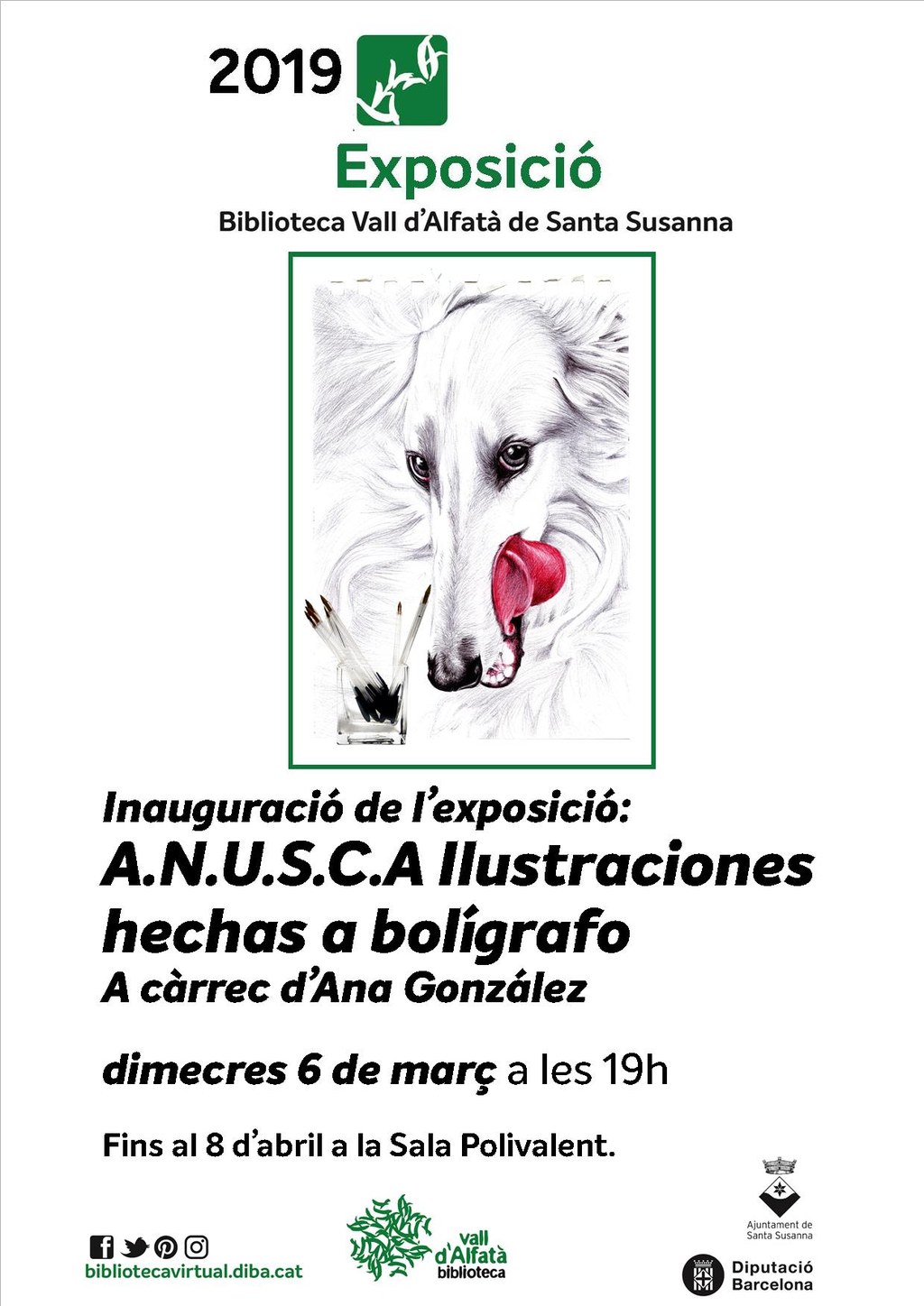 Dimecres 6 de març s'inaugurarà l'exposició "A.N.U.S.C.A Ilustraciones hechas a bolígrafo" de l'artista Ana González. Podreu visitar-la a la Sala Polivalent de la Biblioteca Vall d'Alfatà fins al 8 d'abril.
