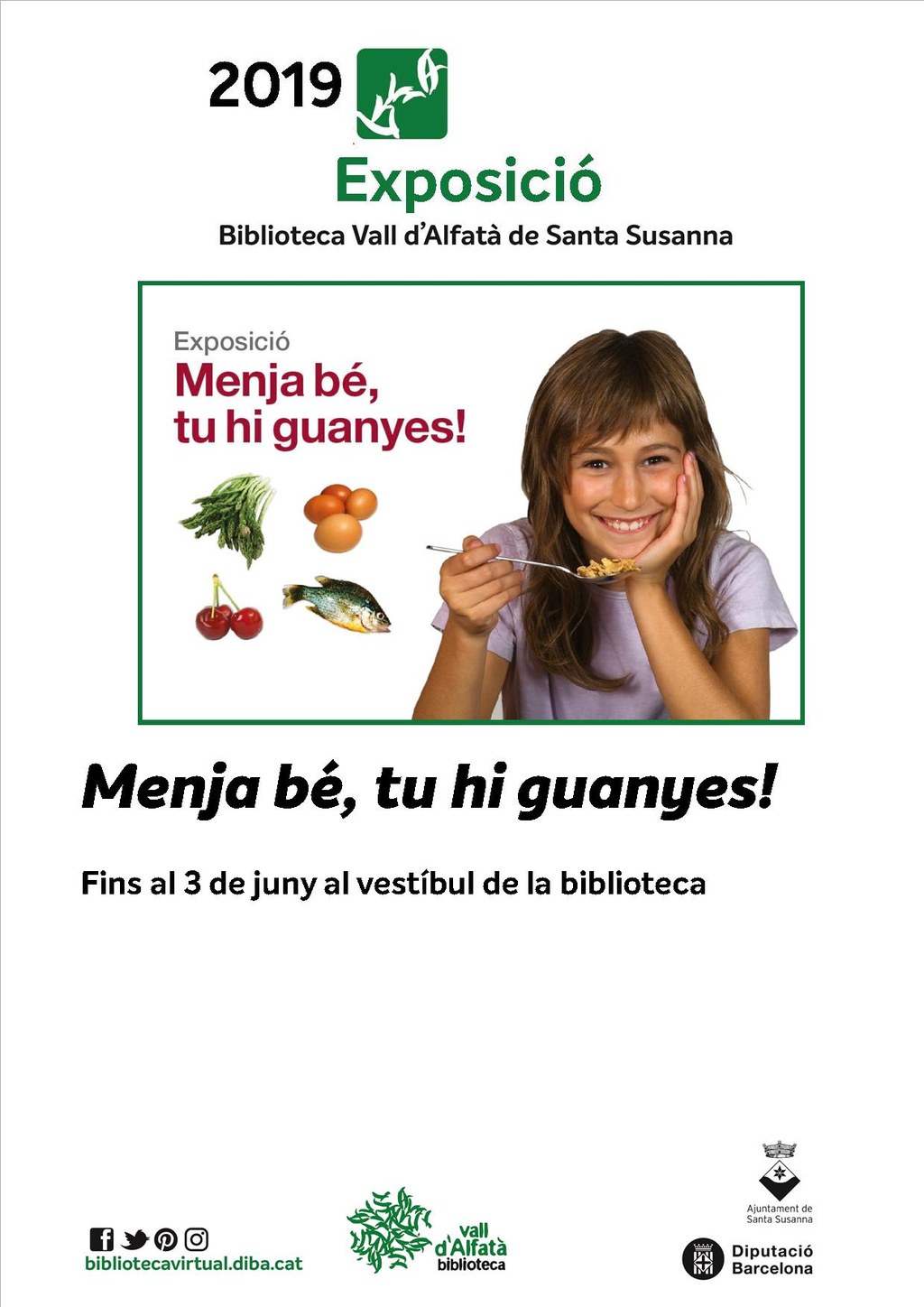 No us perdeu l'exposició  "Menja bé, tu hi guanyes!", fins al 3 de juny al vestíbul de la Biblioteca Vall d'Alfatà.