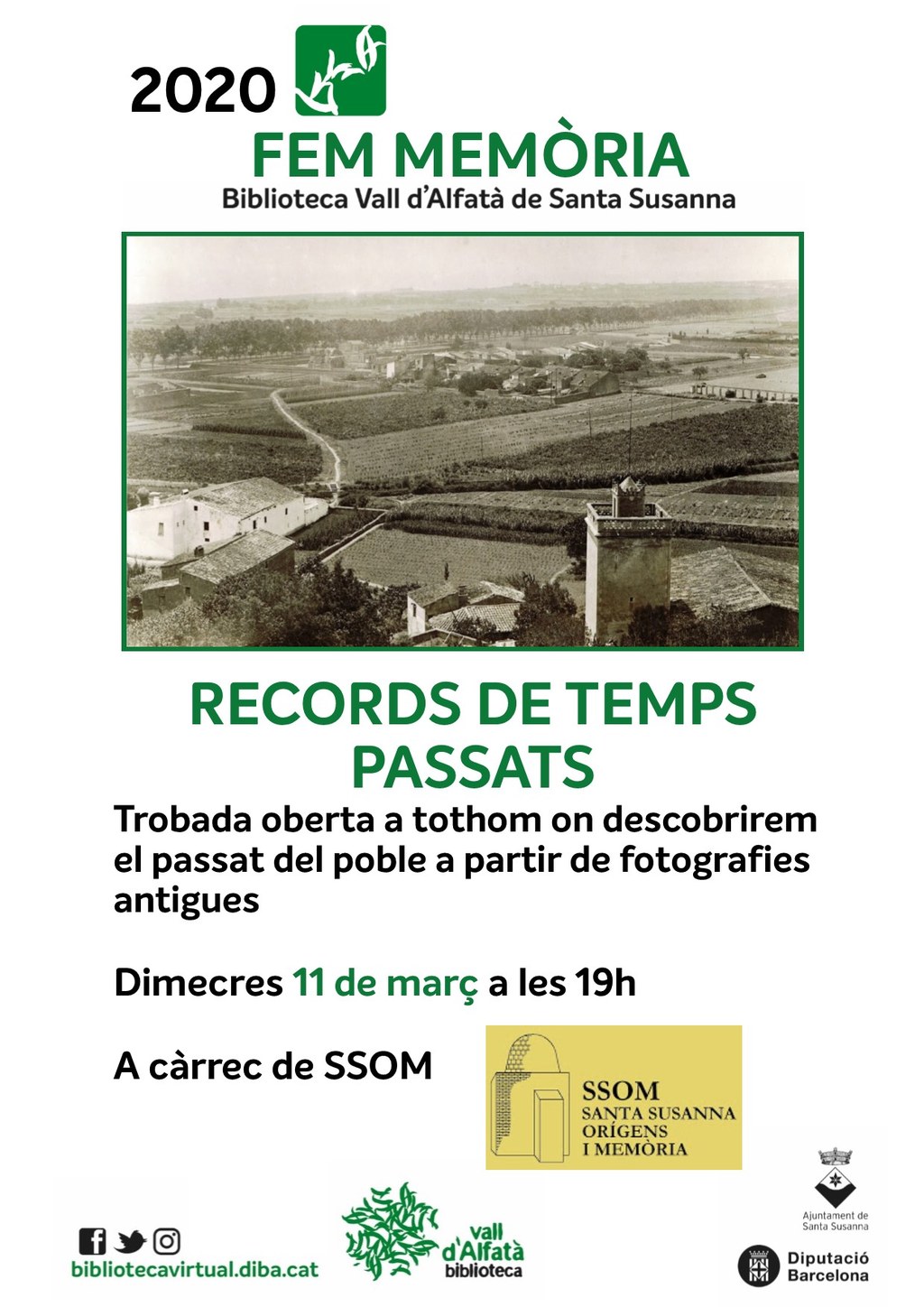 - El SSOM presenta "Records de Temps Passats" a la Biblioteca Vall d'Afaltà, una trobada oberta a tothom per descobrir el passat de Santa Susanna a partir de fotografies antigues.