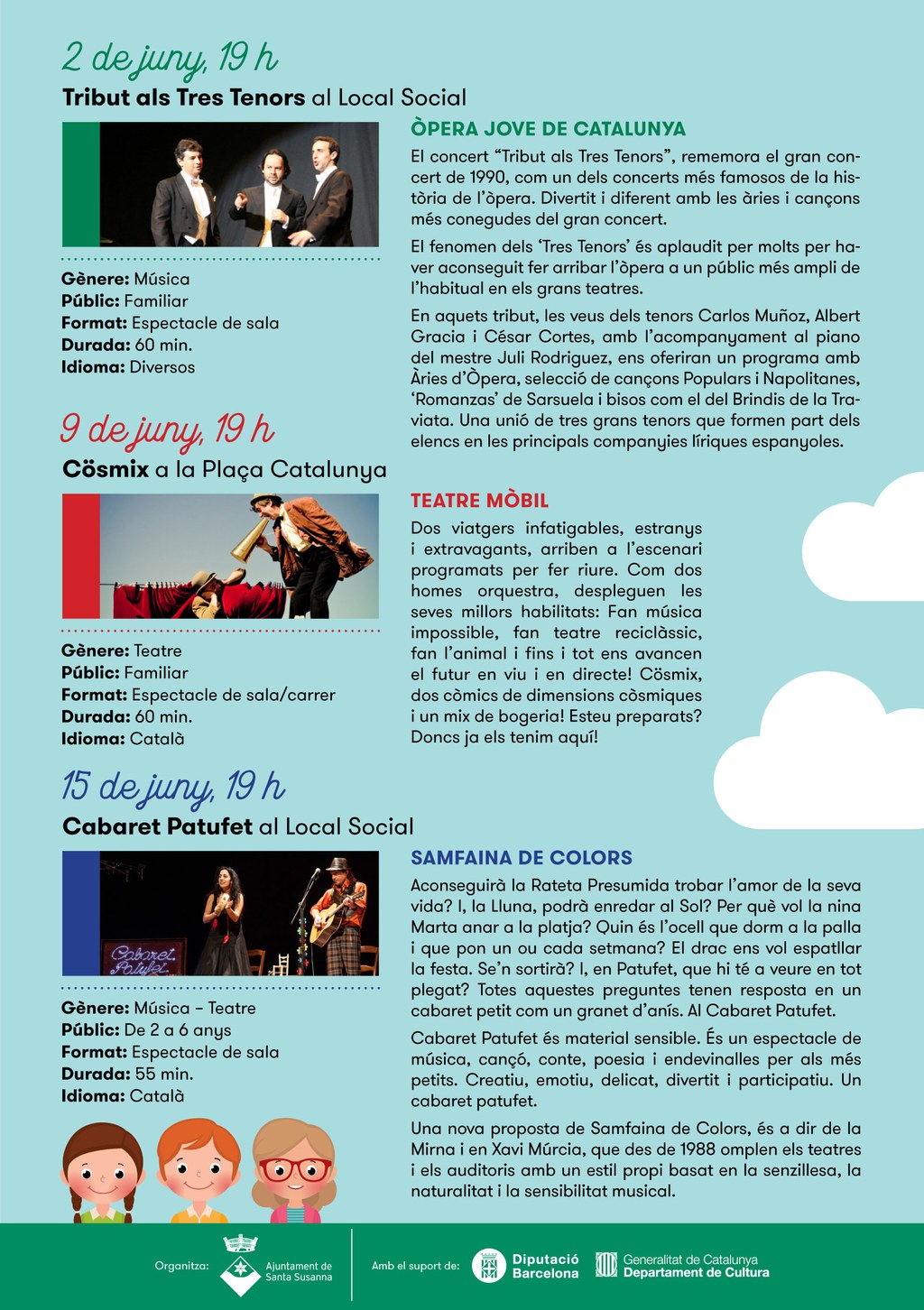 - Cösmix de Teatre Mòbil. Una obra de teatre familiar de 60 minuts de durada en català.