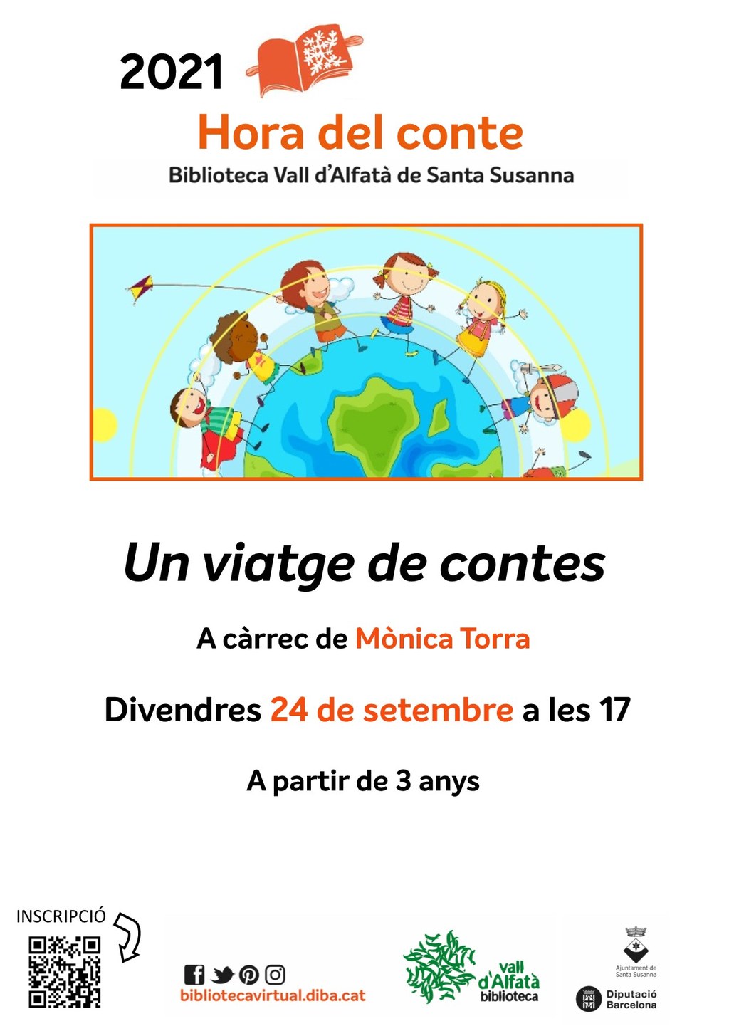 L'Hora del conte del mes de setembre estarà dedicada a "Un viatge de contes" i anirà a càrrec de Mònica Torra. A partir de 3 anys! Reserva de places aquí.