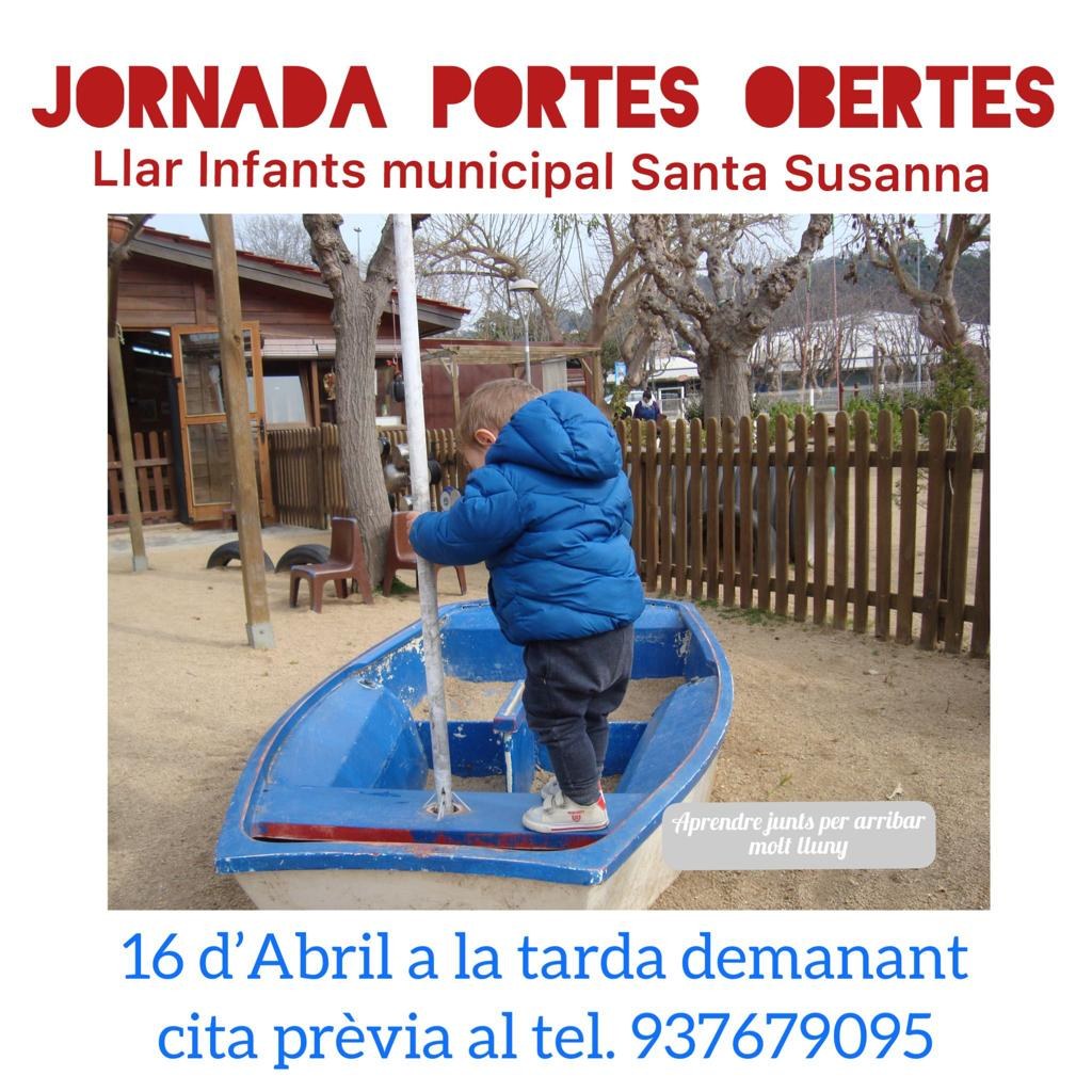 - El divendres 16 d'abril a la tarda es durà a terma la Jornada de Portes Obertes de la Llar d'Infants Municipal de Santa Susanna. Cal demanar cita prèvia trucant al 93 767 90 95.