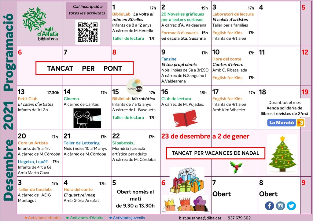 - Programa d'activitats de la Biblioteca Vall d'Alfatà | desembre 2021