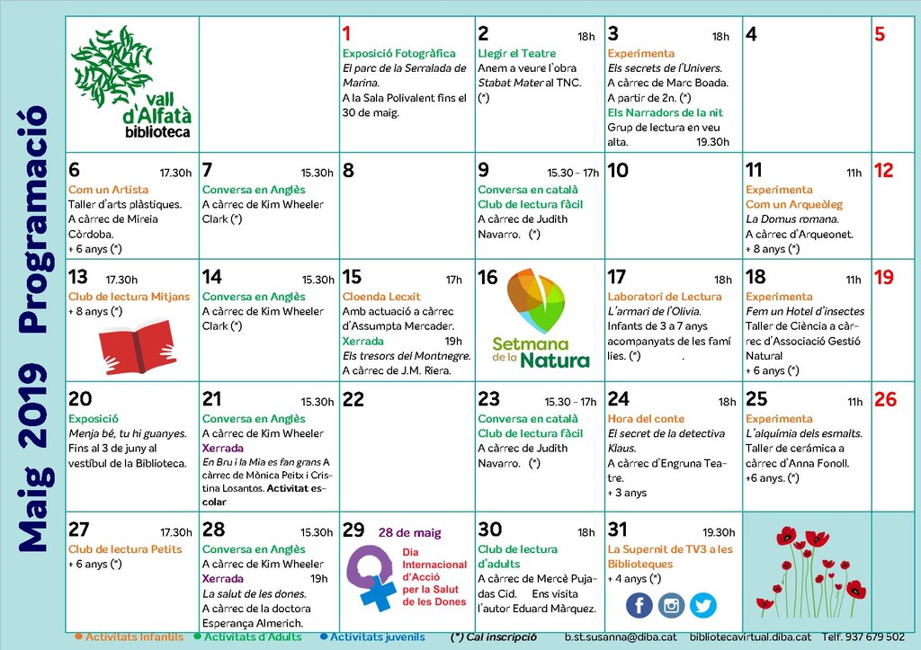 Ja podeu consultar les activitats que la Biblioteca Vall d'Alfatà ha programat per al mes de maig. No us les perdeu!