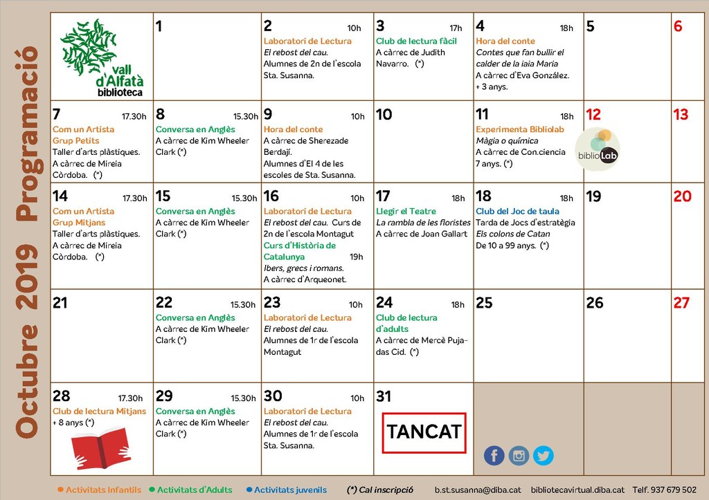 Ja podeu consultar el programa d'activitats del mes d'octubre a la Biblioteca Vall d'Alfatà.