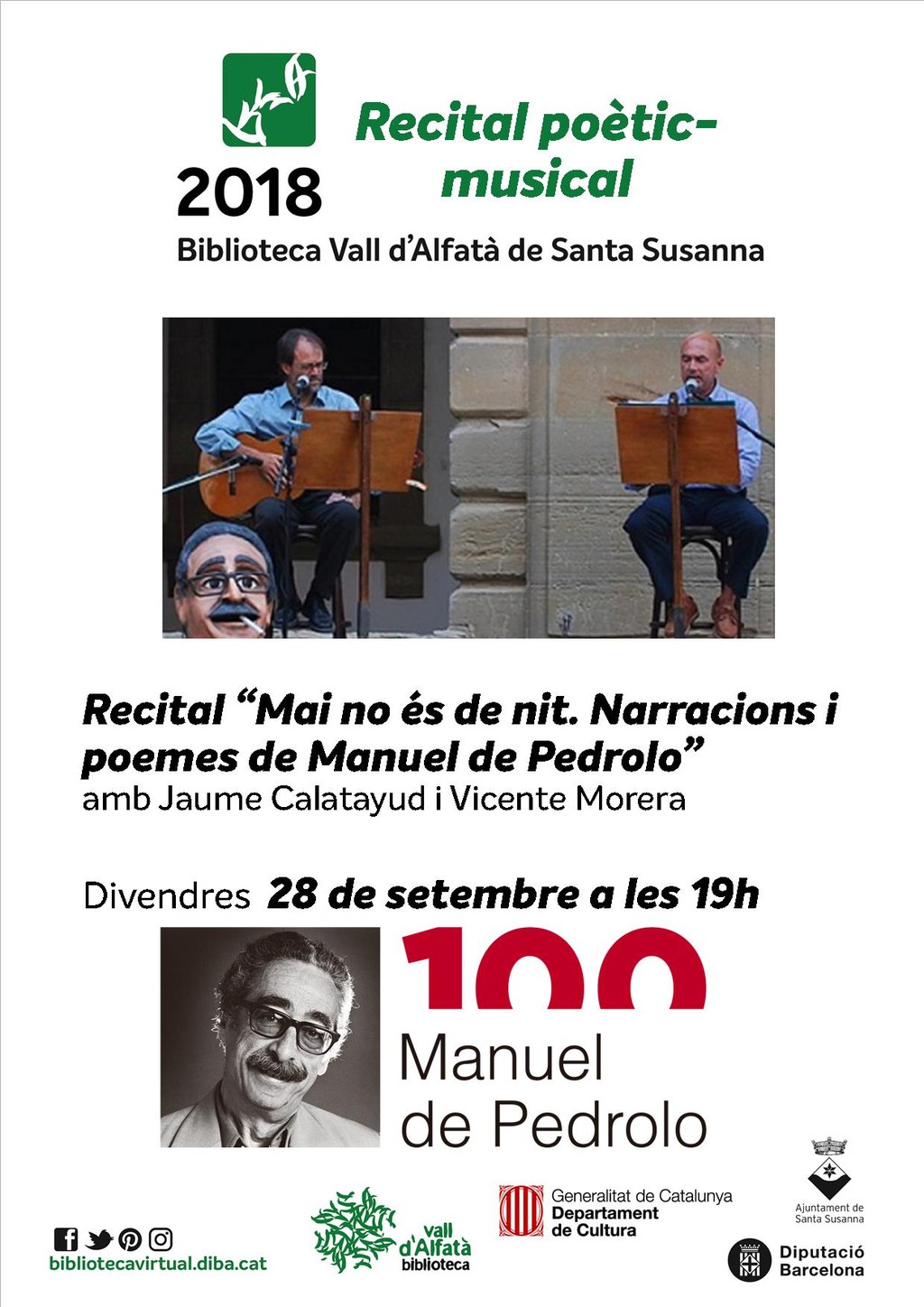 - Recital "Mai no és de nit. Narracions i poemes de Manuel de Pedrolo"