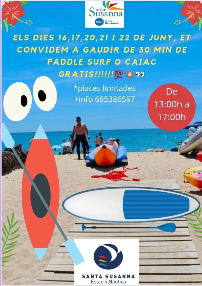 - Durant cinc dies, i de la mà de l'Estació Nàutica de Santa Susanna, es podrà gaudir d'un tastet gratuït de 30 minuts de paddle surf o caiac.
