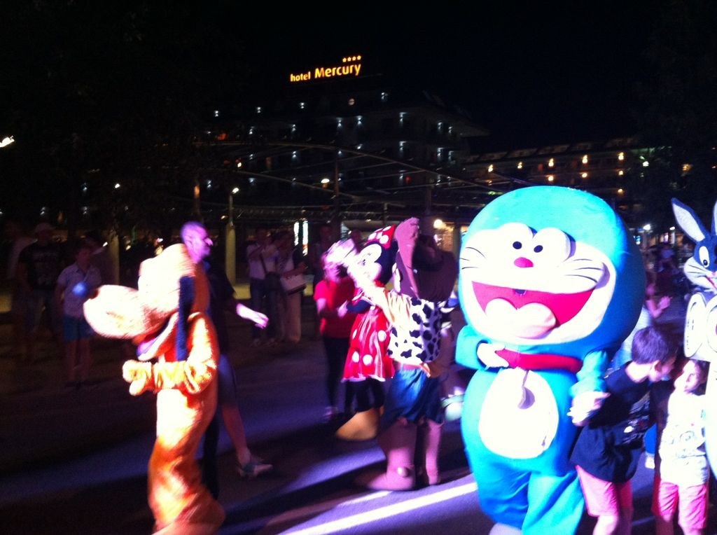 Cares d'il'usió, famílies que seguien el recorregut de més de 1 km davant dels hotels de Santa Susanna amb música i alegria.