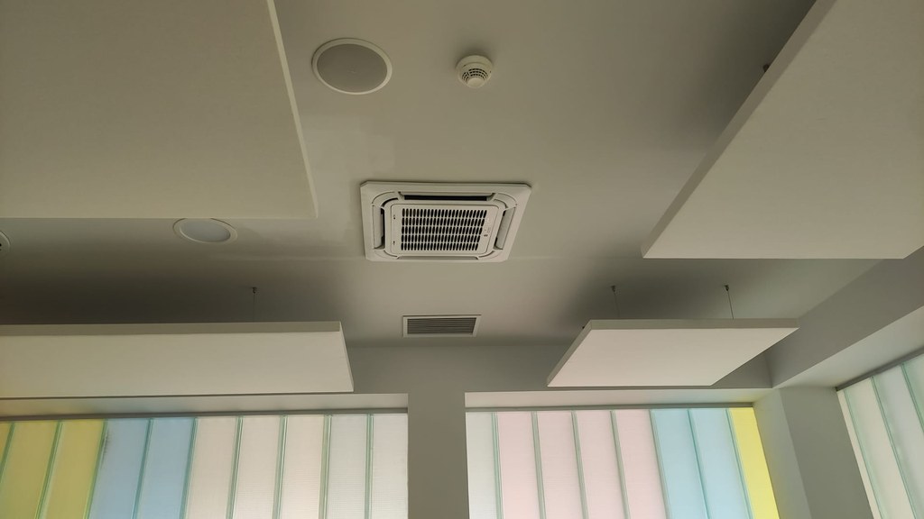 - Instal·lació d’una màquina d’aire amb bomba de calor suspesa per aportar temperatura a la primera planta.