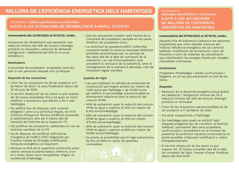 Per a més informació sobre els requisits que han de complir els edificis i sobre les respectives quanties de l'ajut, consulteu el document adjuntat a la dreta de la notícia.