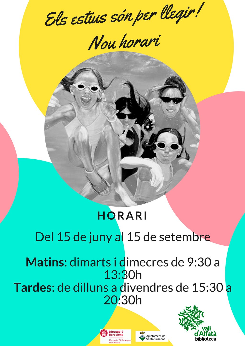 La Biblioteca Vall d’Alfatà de Santa Susanna modificarà el seu horari habitual del 15 de juny al 15 de setembre.