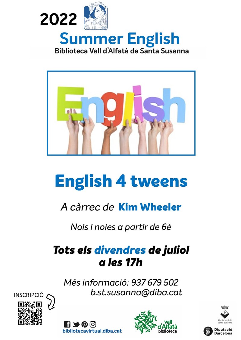 - Els divendres a les 17 h – English 4 tweens per a nois i noies a partir de 6è.