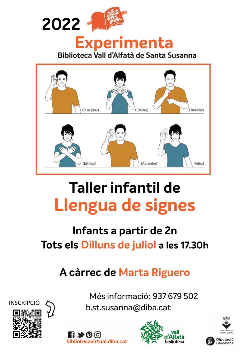 - Els dilluns a les 17:30 h – Taller infantil de Llegua de signes per a infants a partir de 2n.