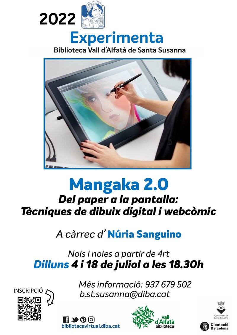 - 04/07 i 18/07, a les 18:30 h – Mangaka 2.0. Del paper a la pantalla: tècniques de dibuix digital i webcòmic.