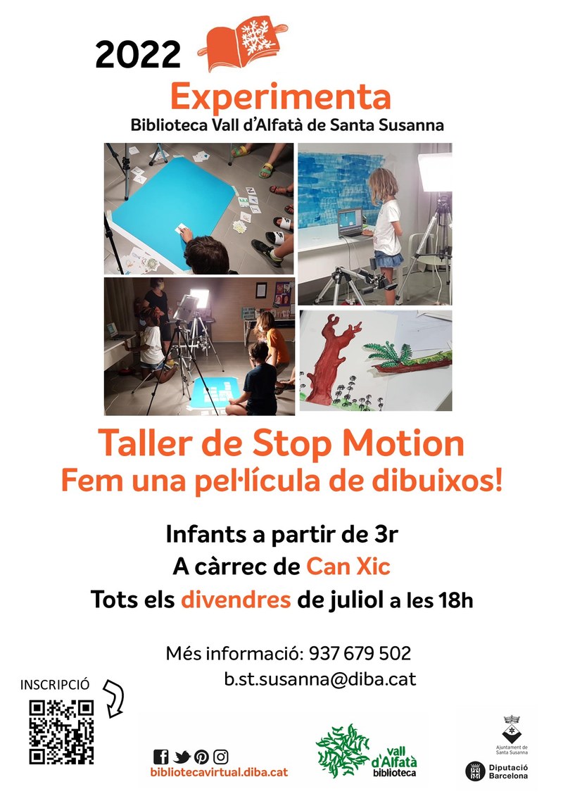 - Els divendres a les 18 h – Taller de Stop Motion: Fem una pel·lícula de dibuixos! Per a infants a partir de 3r.
