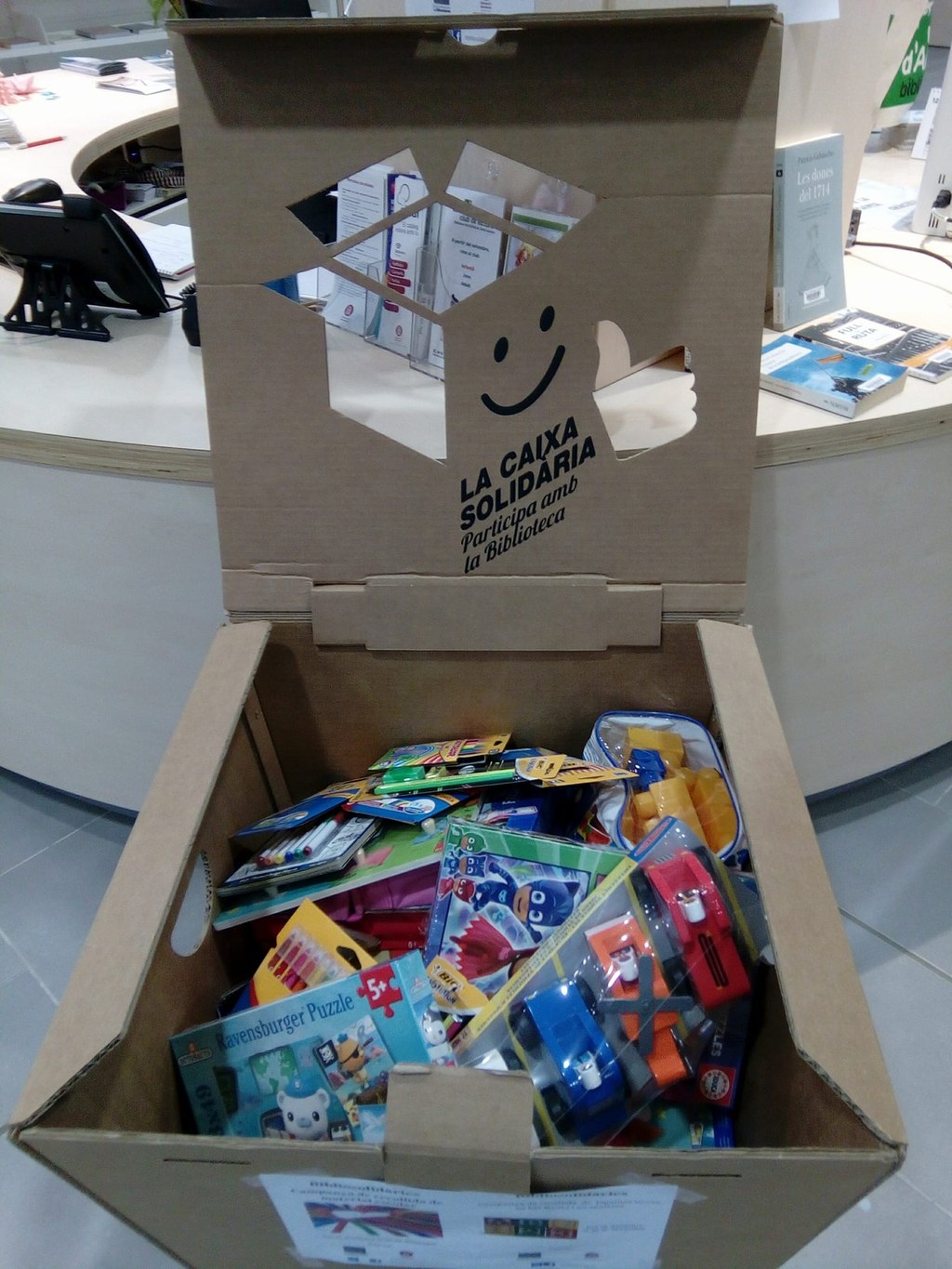 Les joguines que s’han entregat als petits i petites de les famílies usuàries de Serveis Socials, provenen, per una banda, per la compra realitzada per part de l’Ajuntament a Poly Joguines del Centre Comercial de Santa Susanna, els quals han millorat les condiciones econòmiques. I per altra banda, la Biblioteca Val d’Alfatà de Santa Susanna, que s’ha adherit a la campanya de la Xarxa de Biblioteques Municipals de la Diputació de Barcelona, juntament amb les Biblioteques del Maresme, Bibliosolidàries, ha realitzat una campanya de recollida de Joguines noves, no bèl·liques i no sexistes, des de mitjans de novembre.