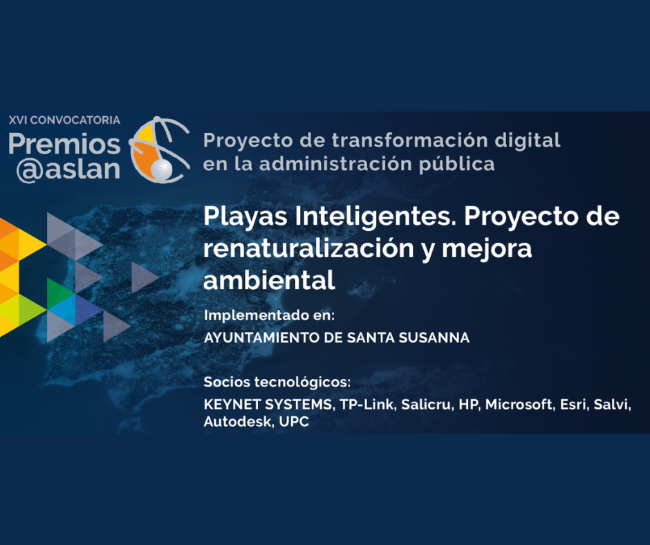 El projecte de Platges Intel·ligents de renaturalització i millora ambiental de la zona costera de Santa Susanna és un dels tres finalistes, juntament amb la Junta d'Extremadura i l'Ajuntament de Marbella, que opten a guanyar la 15a edició dels Premis @aslan. Aquests guardons, organitzats per l'Associació @aslan formada per 188 empreses de la indústria de la innovació digital i la ciberseguretat, reconeixen els casos d'èxit de Transformació Digital a l'Administració Pública a Espanya. Aquest any, els premis ha rebut 80 iniciatives de 62 administracions i organismes públics. Els projectes guanyadors es coneixeran a la Gala de Lliurament el proper 17 d'abril, en el marc del Congrés #ASLAN2024 que es farà a Madrid.