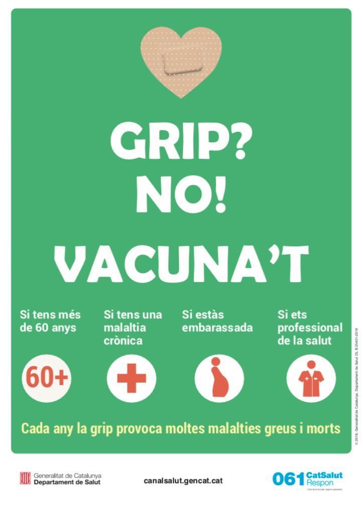 Des del 22 d'octubre i fins a finals de novembre es durà a terme la campanya de vacunació contra la grip 2018- 2019 al Centre d'Atenció Primària de Santa Susanna.  Al document adjunt de consells per als pacients podreu consultar per a quines persones està indicada aquesta vacuna així com més informació sobre la mateixa.