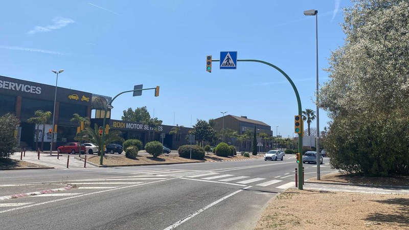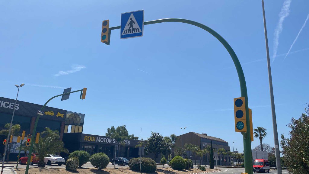 Aquest sistema es fa servir en la majoria de semàfors que confronten amb una rotonda. No s’ha realitzat en sentit Girona per no augmentar el perill per al vianant.
