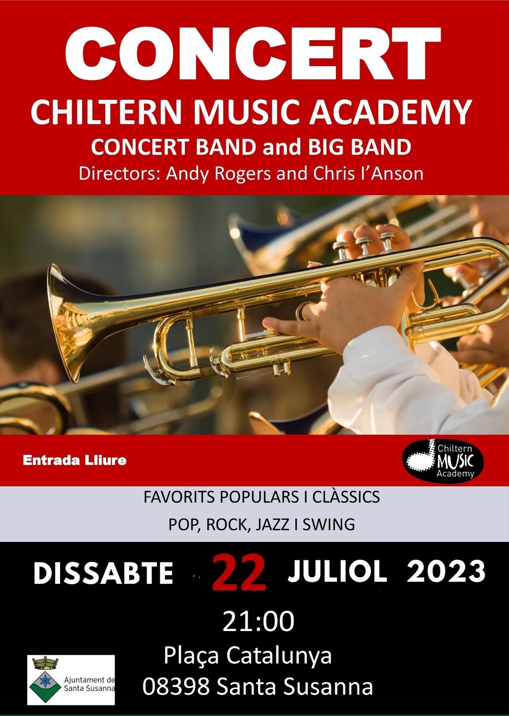 L’Acadèmia de Música de Chiltern (Chiltern Music Academy) actuarà aquest dissabte a Santa Susanna aprofitant que estan allotjats en un hotel del poble. Aquest prestigiós centre farà dos concerts. Amb el cor i l’orquestra simfònica de l’acadèmia actuaran a l’església parroquial (19:30 h) interpretant Rimsky Korsakov, Borodin, Mozart, Mendelssohn, Chilcott i Pitoni.  I a les 21 h faran un concert de banda a la plaça Catalunya amb els clàssics del jazz, rock swing...