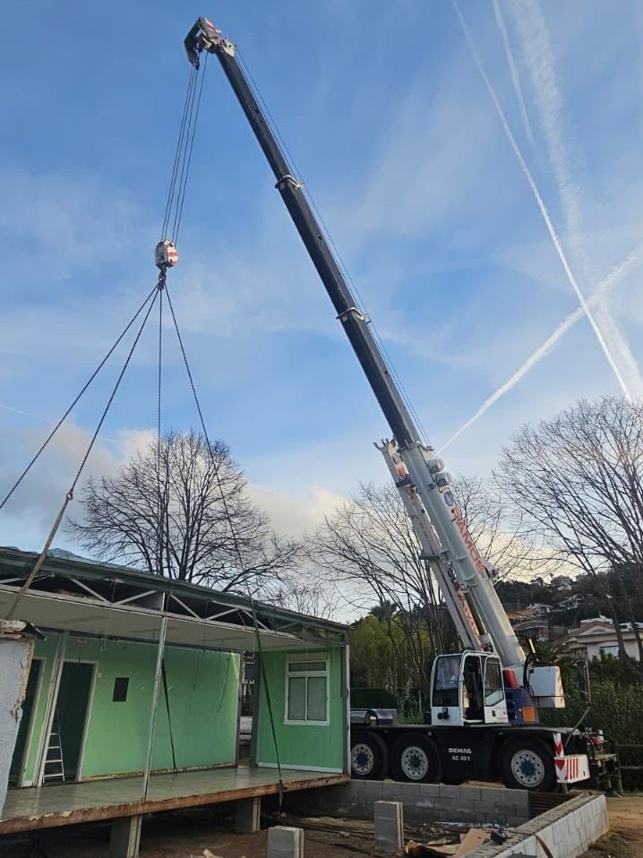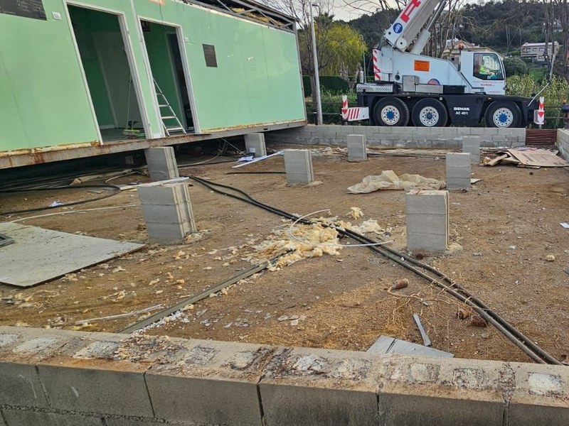 L’edifici prefabricat es construeix en un 90% en una nau-taller, no a l’espai on anirà instal·lat. Quan s’acabi es traslladarà a peces fins a l’Escola Santa Susanna i es muntarà allà mateix.