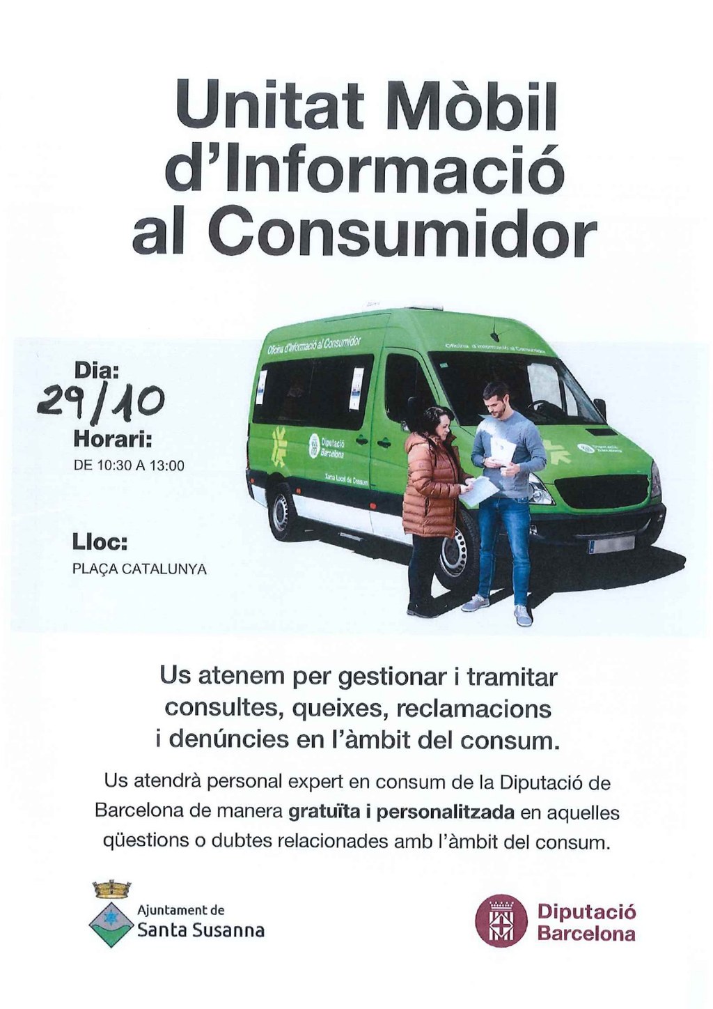 La Unitat Mòbil d'Informació al Consumidor de la Diputació de Barcelona s'atura a Santa Susanna el 29 d'Octubre📍Plaça Catalunya ⏰ De 10.30h a 13hhttps://www.stasusanna.cat/ca/actualitat/noticies/la-unitat-mobil-dinformacio-al-consumidor-de-la-diputacio-de-barcelona-satura-a-santa-susanna-el-29-doctubrehttps://www.stasusanna.cat/ca/actualitat/noticies/la-unitat-mobil-dinformacio-al-consumidor-de-la-diputacio-de-barcelona-satura-a-santa-susanna-el-29-doctubre/@@images/image-1200-4e7083e0d25bc2a1504d5abb7f01fe53.jpeg