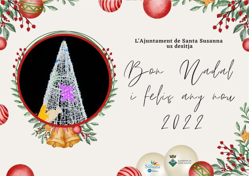 L’Ajuntament vol desitjar a tots els susannencs i susannenques unes molt bones festes i que l’any que aviat entrarà, el 2022, estigui ple de salut i felicitat. La institució ha publicat a les xarxes socials una felicitació de Nadal on l’element principal és un arbre il·luminat que apunta a l’infinit del cel. Un arbre clar sobre un fons fosc on predominen dos colors, el lila i el groc. És una imatge amb un missatge simbòlic clar: que la nostra llum, la personal i la col·lectiva, serveixi per guiar-nos cap a aquell futur que individualment i de forma coral siguem capaços de construir. I que el missatge d’igualtat i respecte cap a la diversitat s’obri camí amb més força a l’any que està a punt de néixer.