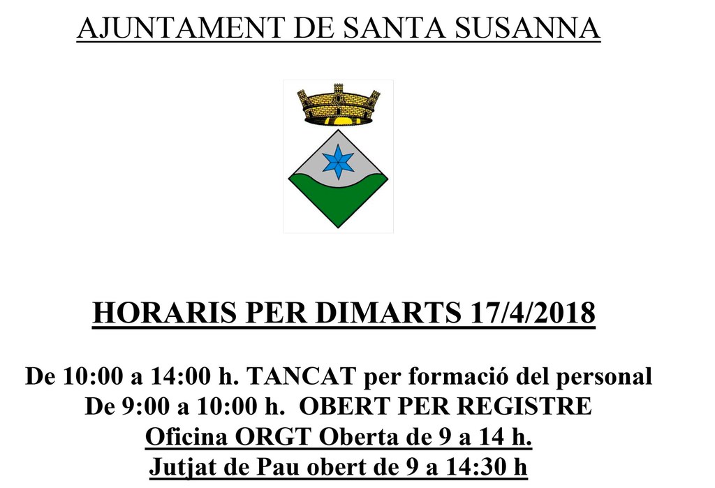 Modificació temporal dels horaris de dimarts 17 d’abril per formació de personal.