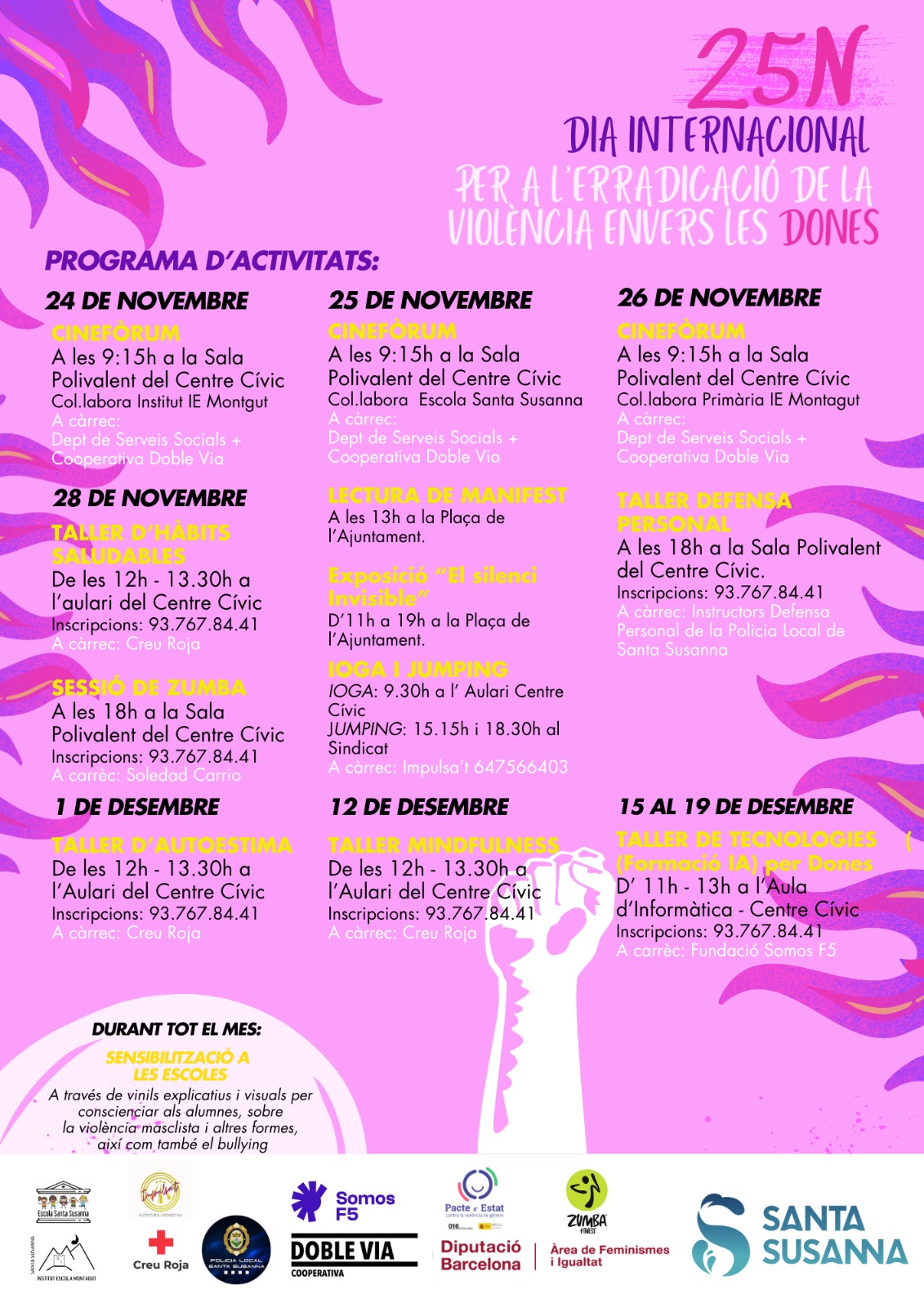 Tallers, xerrades, cinefòrums, esport i espais de reflexió oberts a tothom per dir prou a qualsevol forma de violència masclista.