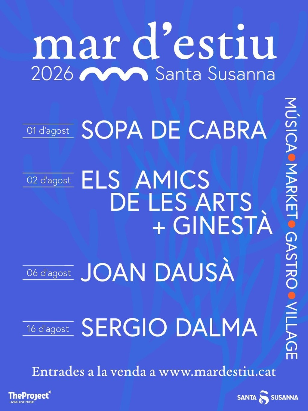Sergio Dalma suma una nova data de la seva gira Ritorno a Via Dalma a la costa de Barcelona, mentre que Joan Dausà ha escollit el municipi per oferir una de les seves deu exclusives actuacions dins la gira Inmortals. Per la seva banda, Sopa de Cabra s’afegeix al festival en un any especialment simbòlic, ja que la formació gironina celebrarà el seu 40è aniversari. També hi haurà un concert doble protagonitzat per Ginestà i Els Amics de les Arts, una trobada que connecta dues generacions del pop català.