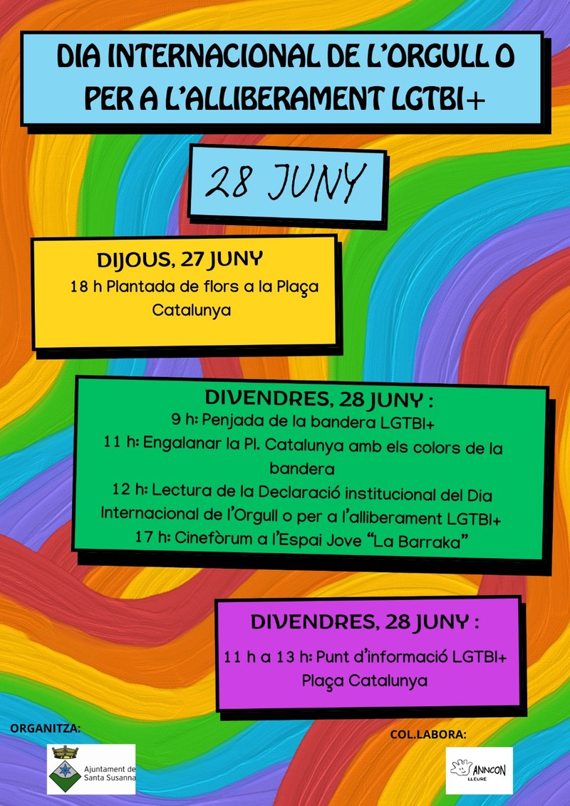 Conscients de la necessitat de fomentar una societat més justa i inclusiva, s’organitzen tallers i activitats adreçades a combatre la discriminació i a donar suport al col·lectiu LGTBI+, coincidint amb el dia de l'Orgull, 28 de juny. Aquestes iniciatives tenen com a objectiu crear espais segurs i promoure el respecte per la diversitat, afavorint així la convivència i la igualtat d'oportunitats per a tothom.